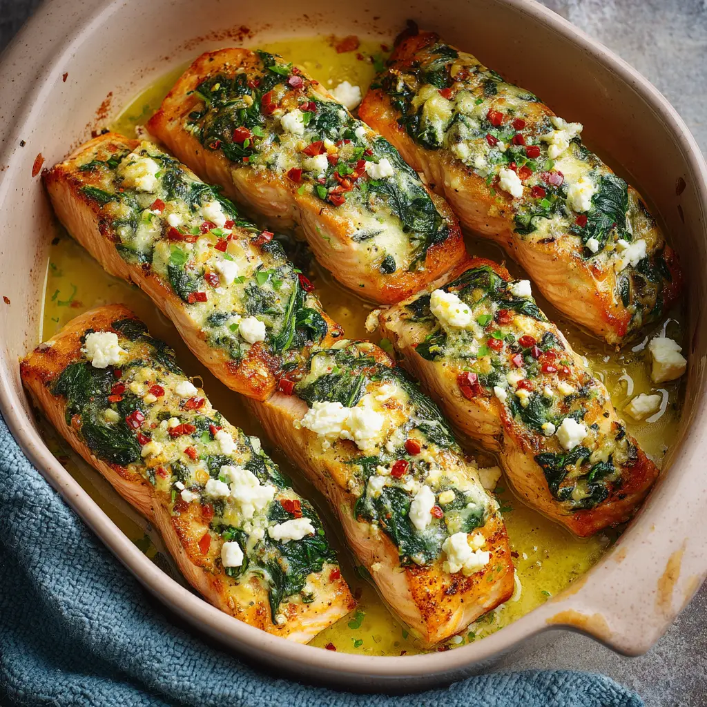 Baked Stuffed Salmon (The Ultimate Cheesy Spinach Recipe)