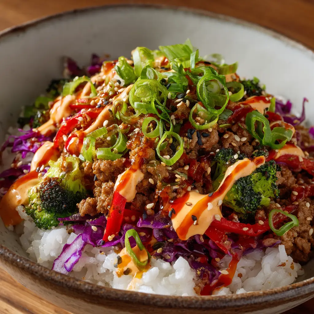 Transform your dinner routine with these Bang Bang Ground Turkey Rice Bowls. Ready in under 30 minutes, this recipe features seasoned ground turkey and a creamy, spicy sauce over fluffy rice for an easy, flavor-packed meal.