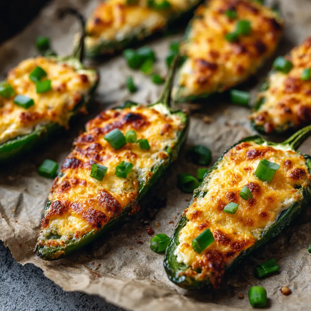 - Bake for 18 to 20 minutes until the jalapeño skins are slightly blistered and the cheese topping forms a bubbling, golden-brown crust.