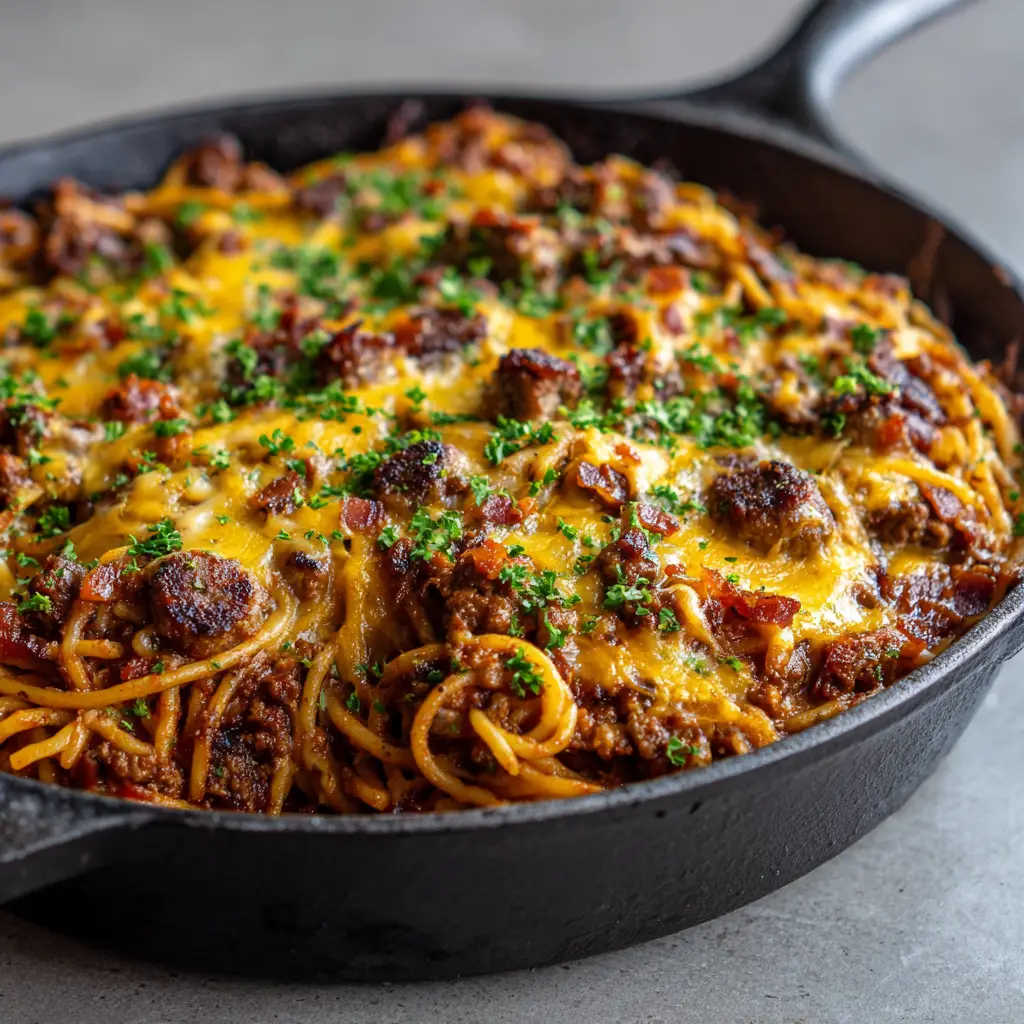 There is nothing quite as comforting as a rustic black cast-iron skillet completely filled with one-pot Cowboy Spaghetti. This hearty dinner brings together incredible layers of savory flavor and satisfying textures. It is the perfect weeknight meal that will have your whole family coming back for seconds.